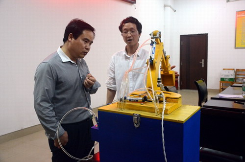 評審會上,科技發明類作品評審現場,參賽學生還進行了演示。