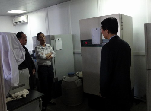 然后,蔡博士對近年來其研究團隊在基因測序領域研究的內容及取得的成果進行詳細介紹。講解近4-5年基因測序技術對臨床醫學的促進及對人類單基因疾病和癌癥臨床研究的影響。講座中,蔡博士結合自己求學和科研經歷同與會的各位老師進行親切交流,并達成初步合作意向。講座前,涂明華教授、蔡濤博士、車向新教授、鄭美蓉教授,在省重點實驗室主任李衛東教授的陪同下,參觀了江西省系統生物醫學重點實驗室。