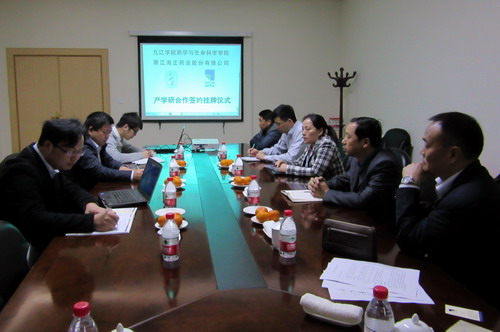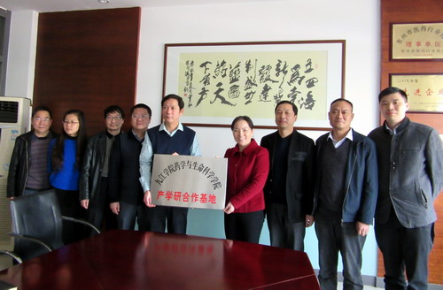 嚴書記一行分別與江西濟民藥業有限公司、蘇州立新制藥有限公司、蘇州特瑞藥業有限公司、浙江海正藥業股份有限公司、浙江華海藥業股份有限公司、臺州海神制藥有限公司等用人單位舉行“產學研”合作基地簽約掛牌儀式。
