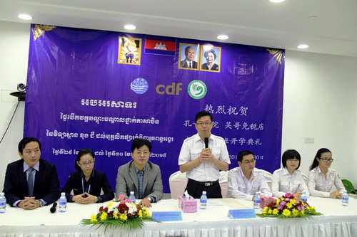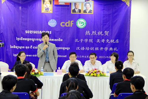 趙遠昭說,近年來王家研究院孔子學院的各項工作卓有成效,在柬埔寨社會各界引起了強烈反響。此次,能與王家研究院孔子學院合作在CDF(暹粒省吳哥免稅店)舉辦漢語學習班,機會難得,免稅店全體柬埔寨籍銷售人員的漢語水平必將得到大幅提高。對此,他謹代表暹粒省吳哥免稅店對孔子學院的大力支持和幫助表示感謝。