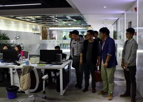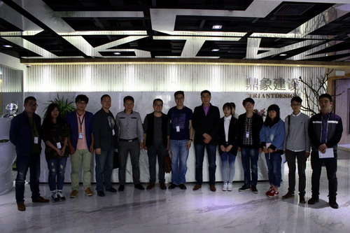 為了解學生在實習單位的實習情況,進一步加強教師與設計企業之間的交流。4月22日,藝術學院環藝與工造教研室吳小亮主任,詹偉國老師帶領部分大三學生來到上海鼎象裝飾工程設計有限公司考察交流,并看望正在該公司實習的環境設計專業的畢業生們。