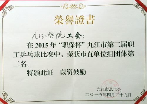 4月29日,來自九江市、縣、區56支代表隊,共386名運動員參加的九江市“職保杯”第二屆乒乓球賽在潯陽區體育館落下帷幕。經過三天緊張的比賽,我校乒乓球隊力克強敵,以八勝一負的優異成績奪得了本屆乒乓球賽團體亞軍。這也是我校乒乓球隊近年來取得的最好成績。