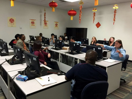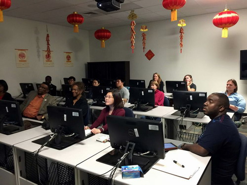 4月30日下午,美國薩凡納州立大學孔子學院在學校圖書館二樓教室組織召開了九江學院和薩凡納州立大學兩校交換生經驗交流座談會。參加交流會的有薩凡納州立大學孔子學院中方院長羅其娟、外方院長Peggy Blood、國際交流中心主任Emmanuel Nanuzeyi、孔子學院教師、兩校交換生代表以及計劃今年參加交換項目的薩凡納州立大學學生近20人。