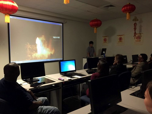 在經驗分享環節中,2014年美國交換生Ladaria Jackson和2015年中國交換生靳富林通過視頻和照片和大家分享了他們精彩紛呈的異國學習生活經歷,并詳細解答了在場同學的提問。