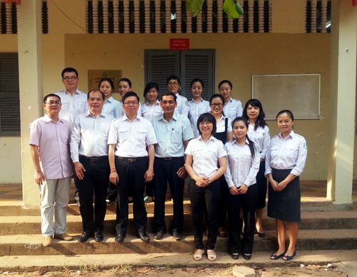 4月30日,謝莫尼勒和帥式毅一起視察暹粒省吳哥高中孔子課堂,共同就孔子課堂的年度工作進(jìn)行指導(dǎo),并召開(kāi)全體公派教師及志愿者的座談會(huì),吳哥高中校長(zhǎng)任諾特(Rin Lot)會(huì)見(jiàn)孔子學(xué)院院長(zhǎng)并列席會(huì)議,座談會(huì)由謝莫尼勒主持。謝莫尼勒在了解到公派教師和志愿者教師的生活和教學(xué)之中的一些困難之后,和任諾特現(xiàn)場(chǎng)辦公解決問(wèn)題。任諾特還承諾提供校園內(nèi)兩塊約1200多平方米的空地給孔子課堂選用建設(shè)教學(xué)大樓。帥式毅從漢語(yǔ)教學(xué)、文化活動(dòng)和教學(xué)科研三個(gè)方面對(duì)下一階段的工作進(jìn)行了指導(dǎo)說(shuō)明。他指出,教學(xué)上,各位教師可以通過(guò)“互相聽(tīng)課”的方式來(lái)提高大家的教學(xué)水平,達(dá)到共同學(xué)習(xí)、一起進(jìn)步的效果。文化活動(dòng)方面,應(yīng)該把中國(guó)傳統(tǒng)節(jié)日慶祝活動(dòng)與柬埔寨當(dāng)?shù)匚幕容^聯(lián)系起來(lái),以期達(dá)到更好地宣傳效果。各位教師應(yīng)該在教學(xué)同時(shí),深入研究爭(zhēng)取出一批教學(xué)成果。會(huì)上,各位教師也紛紛發(fā)言為孔子課堂的進(jìn)一步發(fā)展獻(xiàn)言獻(xiàn)策。