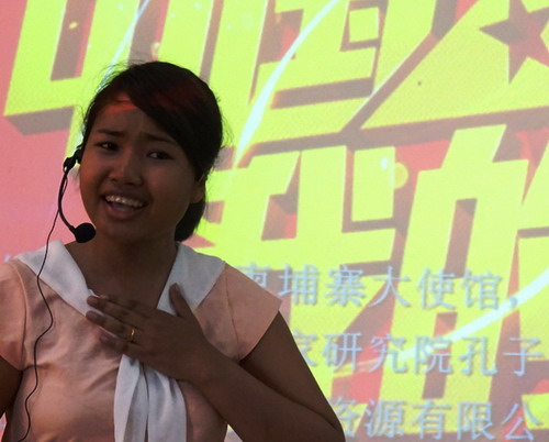 比賽場上,演講中的選手們情緒飽滿地暢言自己的“中國夢”。他們或動情講述自己與漢語結緣的過往,或大膽暢談自己心目中的中國,或憧憬遨游中國的名山大川,或立志做一條紐帶傳承中柬友誼……參加比賽的陳玉美同學在演講中說:“中國的美,不僅體現在那夢幻般的四季風景里,讓人心馳神往,更是體現在她那以‘和’為貴、熱愛和平的和諧與大氣中,讓人心生感動……”