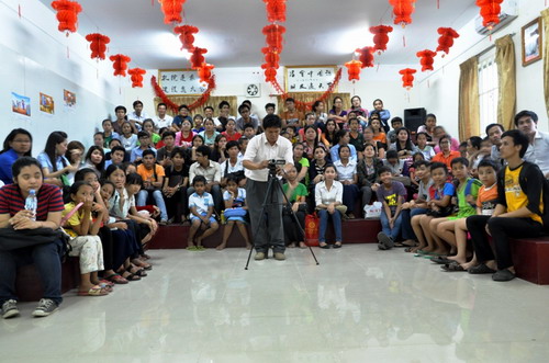 隨后,攝制組一行分別參觀了各個教室,拍攝了漢語教師志愿者的上課實況。