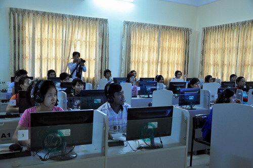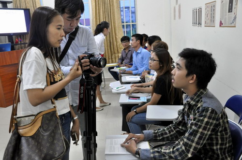 電視臺還對柬埔寨王家研究院孔子學院的個別學生進行了采訪,彼此就學習年限、學習目的及對學習中文的感想進行了交流。一名來自暹粒省的學生說,聽說孔子學院的中文教學很好,她特地來金邊學習中文。她喜歡中文不僅僅是能找個好工作,而且中國文化的博大精深也是深深吸引她的原因。