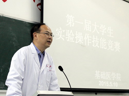 5月10日,實驗操作競賽正式拉開帷幕,車向新院長、余朝陽書記、鄭美蓉副院長、汪鑫副院長參加了開幕式。醫學基礎實驗中心錢雋主任主持開幕式,車向新院長做了簡短的講話,闡明了此次實驗操作競賽的意義,鼓勵同學賽出好成績。