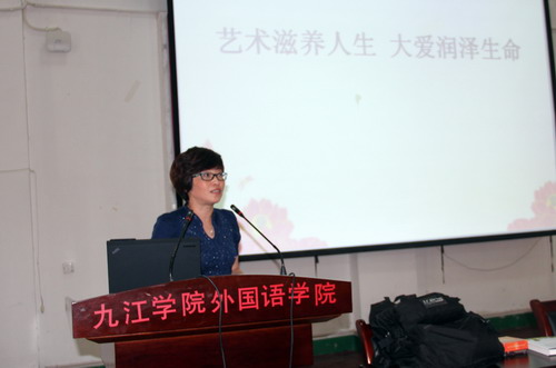 5月13日下午,美國肯塔基州路易維爾大學曾唯斌教授在香遠樓三樓報告廳為外國語學院師生作了一場題為“藝術滋養人生”的學術報告。九江市外事辦副主任吳小船、科長于紅,九江職業大學國際交流處處長曹遷平,外國語學院領導以及師生200余人參加,外國語學院院長韓琨主持報告會。