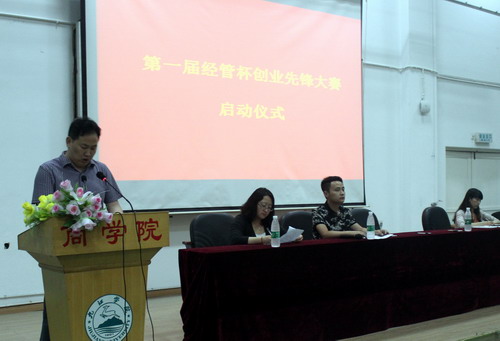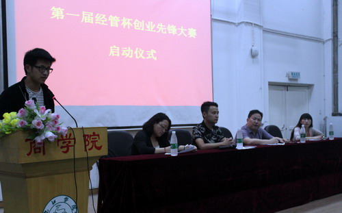為激發(fā)當(dāng)代大學(xué)生自主創(chuàng)業(yè)熱情,培養(yǎng)和提升大學(xué)生的創(chuàng)造精神,日前,經(jīng)管學(xué)院于文友樓三樓報(bào)告廳召開(kāi)首屆“創(chuàng)業(yè)先鋒”大賽啟動(dòng)儀式。經(jīng)管學(xué)院黨委副書(shū)記蔡飛、團(tuán)委負(fù)責(zé)老師李海、工商管理教研室老師戴雯杰、實(shí)驗(yàn)中心老師張冬霞出席儀式。