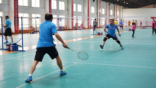 整場比賽分上午和下午進行。上午,單打比賽拉開戰幕。熟悉的面孔、陌生的場地、趣味的規則、爽朗的笑聲,選手們儼然把比賽當成了一場聚會、一場交流。男子單打比賽中,種子選手輪空小組賽給了許多羽毛球愛好者一展風采的機會,羽毛球在各個場地上不斷劃出美麗的弧線,至于是降落在了場內還是場外,這絲毫沒有影響到大家的心情。女子單打比賽中,巾幗們更愿意讓羽毛球在天上多飛一會兒,如此往復,樂此不彼。進入淘汰賽階段,火藥味越加濃厚,新晉的羽壇新秀碰上了當下的種子選手,是較量、是交流?這些味道夾雜在羽毛球飛速的旋轉和升降中。