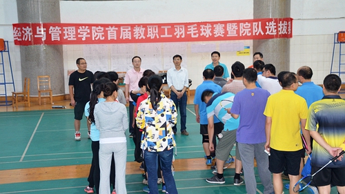 為進一步豐富教職工業余生活,增進彼此之間情感交流,5月16日,經濟與管理學院首屆教職工羽毛球賽暨院隊選拔賽在主校區北區田徑館激情開賽。本次比賽共吸引了40多名教職工熱情參與,院領導班子全體成員參與了此次活動。活動策劃及組織由院分工會具體承辦。