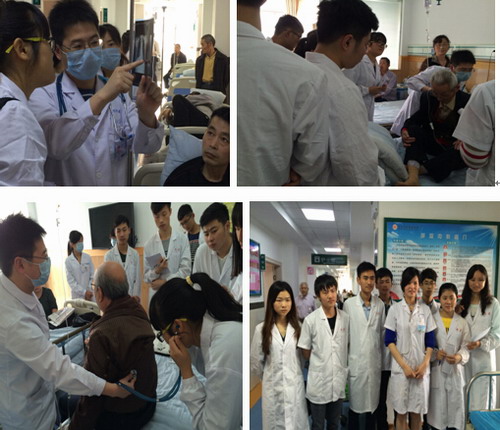 4月22日下午在臨床心血管內(nèi)科見習(xí),分為兩組,分別在陸子華老師和夏老師的細(xì)心指導(dǎo)下,農(nóng)村定向醫(yī)學(xué)生在病床邊就具體臨床案例學(xué)習(xí)了高血壓病,冠心病、心律失常及二尖瓣狹窄等常見疾病的臨床表現(xiàn)和診療過程,心血管內(nèi)科唐新虎主任以淵博的學(xué)識,豐富的臨床經(jīng)驗,由飲食和生活習(xí)慣談到高血壓病的病因、病理及臨床表現(xiàn)和并發(fā)癥等方面,并強調(diào)高疾病重在預(yù)防,就心血管內(nèi)科常見病做了很好的內(nèi)容總結(jié),唐主任講課風(fēng)趣幽默,形象生動,給同學(xué)們留下了深刻的印象。