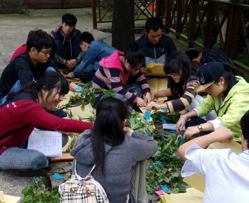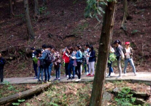 一般三十人左右一個(gè)小組,分別由植物學(xué)專業(yè)老師帶領(lǐng),認(rèn)識廬山各種植物。為了安全管理,一般每個(gè)班還安排班主任或輔導(dǎo)員跟隨。廬山由于山地自然條件的復(fù)雜性,許多植物比平原更有條件保存下來,為保存古老類型如鵝掌楸、擦木、大血藤、紫樹等提供了有利條件。一出門,到處都是植物,帶隊(duì)專業(yè)老師隨手指一棵植物就開始滔滔不絕地給同學(xué)們介紹起來了,“這是羊蹄,廖科,它啊,可以治療便秘啊,跌打扭傷;這是牯嶺牯鳳仙花可以止痛,肚痛啊,牙齦潰爛啊……”同學(xué)都爭相圍著老師,希望能多學(xué)到一些知識。
