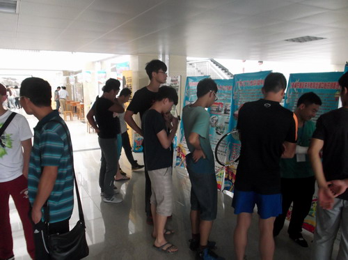 5月21日上午,體育學院在八里湖校區教學綜合樓一樓大廳舉辦“2015體育類畢業生專場招聘會”。此招聘會主題是切實做好畢業生就業工作,大力構建畢業生與用人單位的交流平臺,積極為用人單位輸運應用型人才。本次招聘會得到了學校招就處的大力支持。校招就處處長肖國豐、校友辦主任羅雙鳳及體育學院領導來到現場觀看,并與本次來校招聘的校友們親切交流。