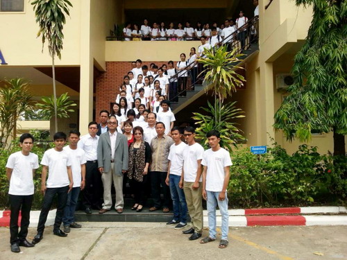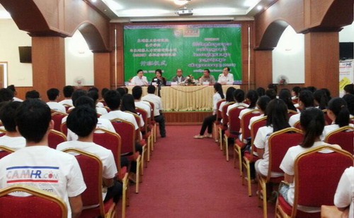 亞歐大學副校長陳索萬(CHHEON SOVORN),孔子學院漢語教師志愿者、柬埔寨人力資源有限公司職員及青年求職者約200余人參加了開班儀式。