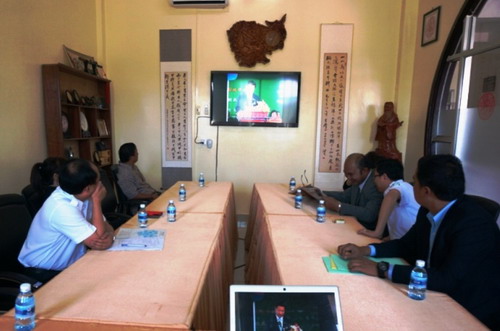 謝莫尼勒閣下介紹了孔子學院的發展情況,柬埔寨孔子學院自成立以來呈現良好地發展勢頭,教學點數量不斷增大,范圍越來越廣。孔子學院的發展為中柬友好關系的發展奠定了重要的基礎,是連接中柬友誼的橋梁紐帶,希望越來越多的柬埔寨青年學生學習漢語,在促進中柬關系發展的同時為柬埔寨的社會發展做出貢獻。