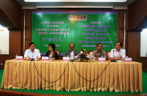 5月23日,柬埔寨王家研究院孔子學院柬埔寨人力資源有限公司(CAMHR)漢語班開班儀式在王家研究院禮堂舉行。柬埔寨勞工與職業培訓部副秘書長得成功(H.E. TES RUKHAPHAL)閣下,孔子學院院長謝莫尼勒閣下(H.E.CHEA MUNYRITH)、柬埔寨人力資源有限公司總經理倪海倫女士(HELEN NGA)出席并致辭,開班儀式由孔子學院中方院長帥式毅主持。