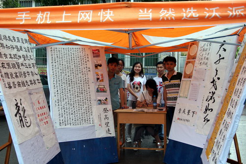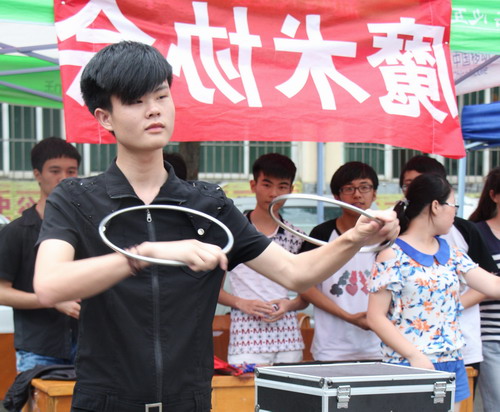 6月2日下午,首屆校園吉尼斯大賽暨第七屆社團文化節成果展在三食堂廣場拉開了帷幕。雖然天公下著小雨,卻阻擋不住前來參賽人的熱情,比賽和成果展現場氣氛活躍,引來圍觀的人也越來越多。