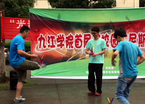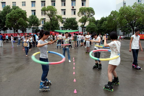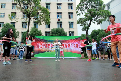 首屆吉尼斯大賽要求每個協會出2人一起進行PK,吉尼斯項目也多種多樣,有呼啦圈、踢毽子、吹氣球、跳繩等,現場比賽激烈,都讓我們看到了因為比賽而團結一心的社團精神。無論是自考之家協會的持久迎戰還是市場營銷協會的斗智斗勇,還有其他協會都拼盡全力的進行比賽,在那一刻,我們認為沒有誰輸誰贏,只要超越了自我的都是勝利者。