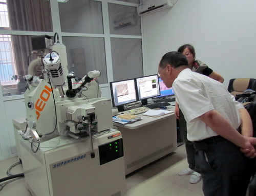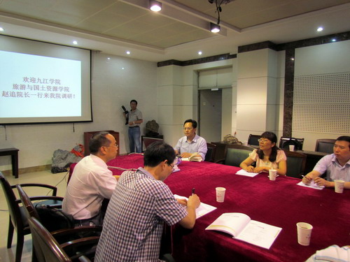 合肥工業大學資源與環境工程學院副院長劉梅教授熱情接待了趙追一行。劉教授主持召開了座談會,會上,該院地理信息科學系主任喻根教授向我們詳細介紹了地理信息科學專業的學科背景、師資和教學、科研教研、實驗實習基地等情況,雙方對學科辦學進行了討論并互通有無,并對廬山實習的經驗也進行了深入的交流,會后帶領我們參觀了相關實驗室。