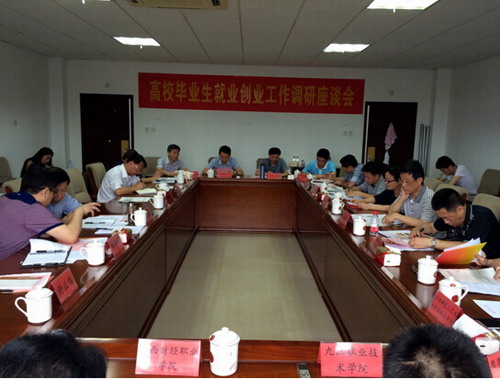 6月3日上午,江西省贛東北片區高校畢業生就業創業工作調研座談會在景德鎮陶瓷學院召開。省教育廳副廳長郭奕珊,省高等院校畢業生就業辦公室主任陳學軍、副主任舒正鳴、市場信息科科長王為民以及景德鎮、九江、上饒地區14所本專科高職院校招生就業部門負責人出席本次座談會,座談會由陳學軍主持。我校畢業生交流辦公室主任兼招就處副處長羅雙鳳、招就處就業科科長潘軼參加本次座談會。
