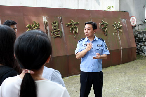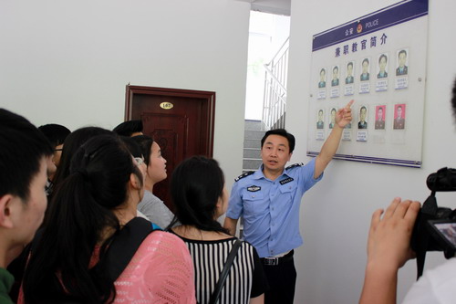 看守所見習教學結束后,程教導員帶領同學們來到瑞昌市公安局警員訓練宣教基地見習教學。程教導員首先向同學們介紹了部分優秀公安干警的先進事跡,并就全國優秀公安民警、全國五一勞動模范、瑞昌市肇城派出所教導員周俊軍的先進感人事跡做了重點介紹,一線公安干警們的正能量使同學們聽后備受鼓舞,對在辛勤工作在公安一線的公安干警多了一份認同、理解與敬佩。
