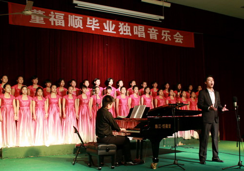 整場音樂會在一種和諧的氣氛中結束,也為董福順的大學生活畫上了一個圓滿的句號。音樂會結束后,學院領導上臺與他親切握手并合影留念。
