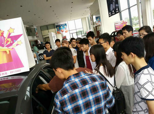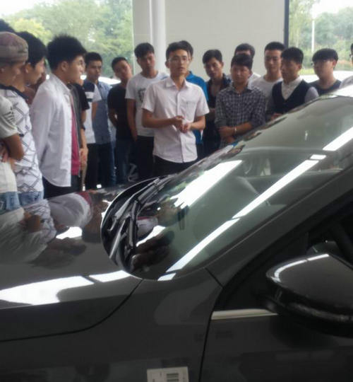 同學們在指導教師帶領下仔細參觀了汽車銷售展廳、售后服務區等工作區域,汽車銷售部經理為大家介紹新速騰這一樣本車型,同學們就大眾新車型的工藝、造型以及與本專業相關方面提出了一系列問題,一汽-大眾九江九源4S店的工作人員進行了詳細解答。