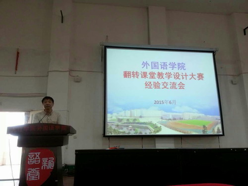 6月10日下午,外國語學院在香遠樓三樓視聽室召開“翻轉課堂課程設計”教學交流會議,在此前舉行的課程設計大賽中獲獎的教師們、負責組織翻轉課堂活動的相關院領導以及全院教師共160余人參加了會議。會議由外國語學院副院長柴克清主持。