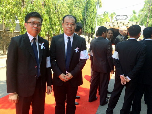 6月12日上午,柬埔寨王家研究院院長(zhǎng)、孔子學(xué)院理事長(zhǎng)克洛媞達(dá)(Khlot Thyda)院士率王家研究院代表團(tuán)前往謝辛官邸吊唁,沉痛悼念參議院主席、人民黨主席謝辛(Chea Sim)親王。孔子學(xué)院院長(zhǎng)謝莫尼勒(Chea Munyrith)、中方院長(zhǎng)帥式毅陪同前往吊唁。