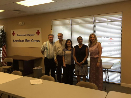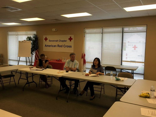 美國當地時間6月15日下午,在孔子學院學生、美國紅十字會薩凡納分會自愿者Behrooz Kalantari博士的引薦下,孔子學院中方院長羅其娟和漢語教師張春子走訪了美國紅十字會薩凡納分會機構。受到薩凡納紅十字會機構負責人Esther Sheppard女士的熱情接待。