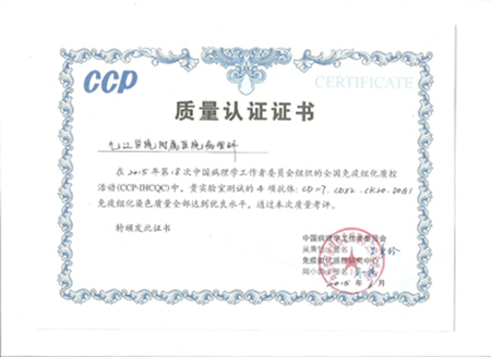 近日,臨床醫學院/附屬醫院病理科在2015年第18次中國病理學工作者委員會(CCP)組織的全國免疫組化質控評比中取得優異成績,獲得CCP頒發的質量認證證書。這是臨床醫學院/附屬醫院病理科自2011年以來第三次參加此項評比活動,三次免疫組化染色質量均達到優良成績,標志著臨床醫學院/附屬醫院病理科在該領域研究和發展一直保持領先水平。