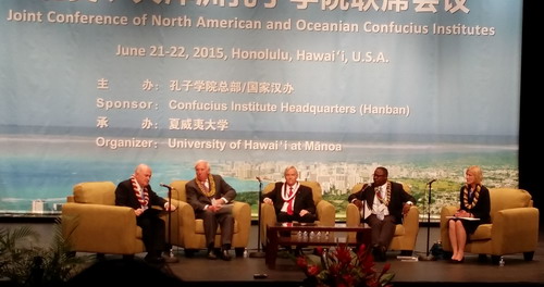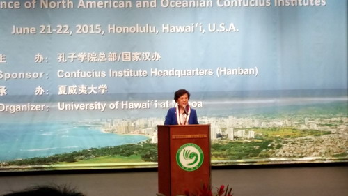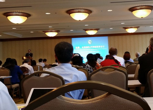 為交流孔子學院辦學經驗,進一步提高辦學質量和水平,促進孔子學院可持續發展,根據孔子學院總部安排,薩凡納州立大學孔子學院中外方院長應邀參加了6月21-22日召開的“2015北美、大洋洲孔子學院聯席會議”. 孔子學院總部總干事許琳女士,副總干事王永利先生;中國駐洛杉磯總領館總領事劉健先生,教育組參贊袁東先生;孔子學院總部美大處的領導;部分大學校長及美國、加拿大、澳大利亞、新西蘭、斐濟孔子學院中外方院長約300人參加了此次會議。