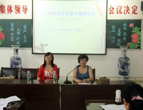 為提高教師教學科研水平,根據我校外國語學院與武漢大學外國語言文學院有關合作協議,7月3日-5日,武漢大學外國語言文學院鄧鸝鳴教授、博導應邀到外國語學院為教師們開設教學科研專項提高班,舉辦3場專題學術講座和1個研討會。