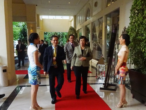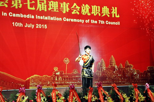 7月10日晚,柬埔寨中國商會在索菲特大酒店舉行第七屆理事會成立暨理事就職慶典。柬埔寨副總理兼內(nèi)政部長蘇慶親王(Sar Kheng),副總理嚴(yán)才利(Yim Chhay Ly),商業(yè)部長孫占托(Sun Chanthol),工業(yè)與工藝部長蒲拉西(Cham Prasidh),旅游部長唐坤(Thong Khon),中國駐柬大使布建國夫婦,政務(wù)參贊檀勍生、商務(wù)參贊宋曉國等柬政府各部委代表、華社各界代表約500人出席。杜平福、黃金玲以流利的漢語,優(yōu)雅的禮儀貫穿著整個典禮全過程。