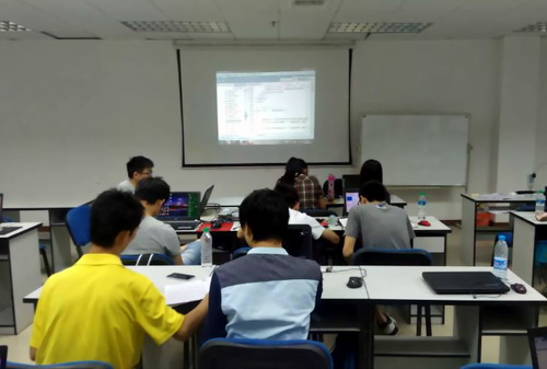 在隨后的開班儀式上,賴老師介紹了中興公司的發(fā)展歷程、企業(yè)文化和海內外業(yè)務市場等內容,并鼓勵同學們抓住機遇、努力學習,從基層干起、踏踏實實地成為一個優(yōu)秀的通信人。開班儀式結束后,卓越班的同學便開始了緊張的學習實踐。32名參訓同學分為軟件方向和網絡方向兩組。軟件方向的同學通過對java的深入學習,完成貪吃蛇游戲的項目;此外,通過對css、jsp、html等知識的學習,完成完整的網頁制作。網絡方向的同學則主要對網絡優(yōu)化、室內分布及5G通信方面的知識進行深入的學習和動手實踐。