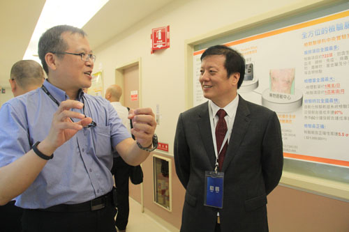 張?jiān)洪L(zhǎng)從理論到實(shí)際多視角地與臺(tái)灣同行和國(guó)內(nèi)同行進(jìn)行了深入探討,并實(shí)地參觀考察了林口長(zhǎng)庚醫(yī)院(為島內(nèi)規(guī)模最大的醫(yī)療機(jī)構(gòu))的內(nèi)科部、外科部、骨科部、耳鼻喉部、婦產(chǎn)部、眼科部、急診醫(yī)學(xué)部、中醫(yī)部、牙科部、麻醉部、影像診療部、兒童內(nèi)外科部、長(zhǎng)庚醫(yī)療商業(yè)一條街、長(zhǎng)庚尖端醫(yī)療園區(qū)質(zhì)子與放射治療中心,張?jiān)洪L(zhǎng)與林口長(zhǎng)庚醫(yī)院的院領(lǐng)導(dǎo)在醫(yī)院發(fā)展、學(xué)科建設(shè)、醫(yī)療服務(wù)等方面進(jìn)行了深入交流。張?jiān)洪L(zhǎng)表示很多方面對(duì)臨床醫(yī)學(xué)院/附屬醫(yī)院今后的醫(yī)院管理和學(xué)科建設(shè)都值得借鑒。