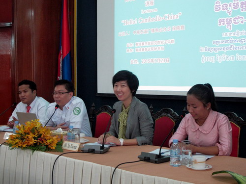 7月23日,柬埔寨王家研究院孔子學院在柬埔寨參議院北會議廳舉辦以《你好!柬埔寨-中國》為主題的講座。講座由參議院秘書局培訓辦主任諾昆(Nop Kuch)主持,參議院秘書局副秘書長隆才閣下(H.E. Lok Chhay)、孔子學院院長謝莫尼勒閣下(H.E. Chea Munyrith)、中方院長帥式毅參加了活動。