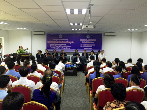 7月29日,柬埔寨王家研究院孔子學院在亞歐大學金色大樓舉行第五屆本土漢語教師教學培訓研討會結業儀式。柬埔寨教育青年體育部國務秘書(副部長)由諾伊(H.E. Mr. Yok Ngoy),中國駐柬埔寨大使館文化處負責人韓靜女士,孔子學院謝莫尼勒院長閣下(H.E. Chea Munyrith) 、中方院長帥式毅先生,亞歐大學董事長楊世明(H.E. Duong Leang)、校長謝索皮(Chea Sopheap)博士等嘉賓出席結業儀式。