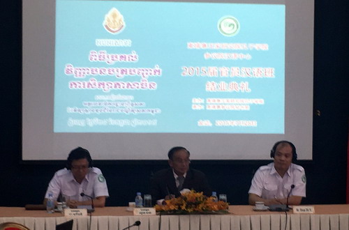 7月28日,柬埔寨王家研究院孔子學院參議院漢語中心2015屆官員漢語班結業典禮在參議院北會議廳順利舉行。柬埔寨參議院秘書局副秘書長隆才閣下(Loak Chhay),柬埔寨王家研究院孔子學院院長謝莫尼勒閣下(Chea Munyrith)、中方院長帥式毅、來自九江學院的公派教師張文峰及參議院漢語中心2015屆官員漢語班學員約80余人參加了結業典禮。