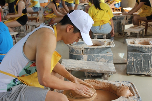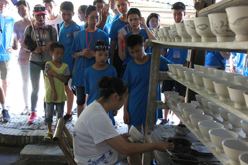 炎炎夏日,營員們來到景德鎮古窯,感受中國千年陶瓷文化。臨近古窯時,張導游介紹瓷器的特點:“白如玉,明如鏡,薄如紙,聲如磬”大家參觀了歷代古窯,了解和欣賞了古代瓷業建筑,明清時期景德鎮手工制瓷的工藝過程以及傳統名瓷精品。瓷樂的展示也吸引了各位營員和領隊,清脆細膩不煩耳,百聽不膩。大家也逛了瓷街和大大小小的產品店,都為陶瓷工藝所震撼,原來生活中經常出現的商品,都可以用陶瓷制成,精巧漂亮,大家進一步加深對陶瓷文化的了解。