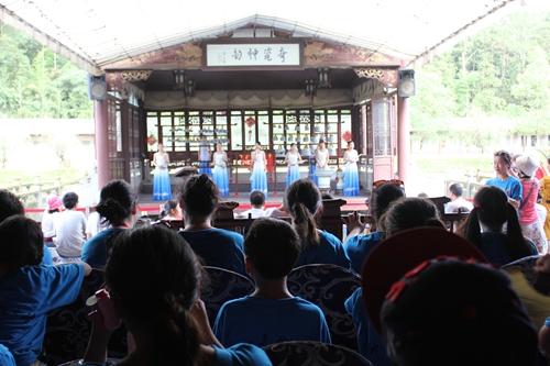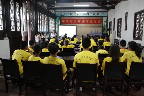 7月25日上午,營員們跟隨著導游來到距離九江市區30公里的白鹿洞書院開始中華文化體驗之旅。白鹿洞享有“天下書院之首”的名號,營員們來到書院的正門口時,都感嘆書院之靜、書院之悠。瑞典新星中文學校營員曾語晨說:“原來這就是古代的學校,在這么安靜,悠閑的地方上課肯定學習成績特別好哈!”走進正學門,邁過狀元橋,營員們細觀碑文,雖顯吃力但是很認真誦讀每一個字。隨后認真聽取著中華書院的文化講座,誦讀著白鹿洞的教規“博學之,審問之,慎思之,明辨之”,領隊老師們都感嘆教規的意義深遠,包含做人處事,學習方法,他們希望把這些教規背下來帶到他國去傳授給外國的學生。