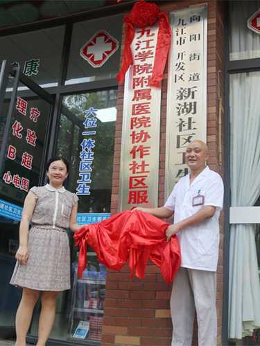 上午9時,臨床醫學院/附屬醫院歐陽副院長和新湖社區文科亮站長一起為“九江學院附屬醫院協作社區服務站”揭牌,這標志著,開發區向陽街道新湖社區衛生服務站正式成為了臨床醫學院/附屬醫院第一家掛牌的協作社區衛生服務站。