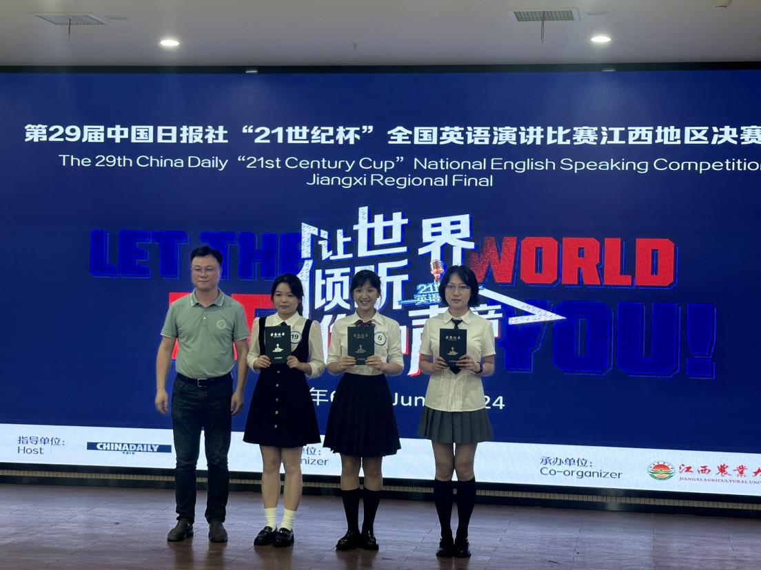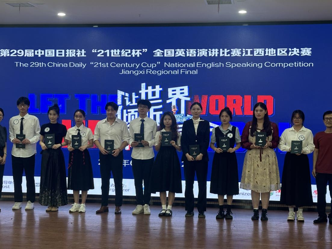 6月22日,第29屆中國日報社“21世紀杯”全國英語演講比賽江西地區決賽在江西農業大學圓滿落幕,經過老師賽前的精心指導,外國語學院兩名學子從校賽脫穎而出參加此次地區決賽,最終均獲佳績。其中,2021級英語專業孔啟惠榮獲江西省一等獎,2022級商務英語專業周雅琦榮獲江西省三等獎。