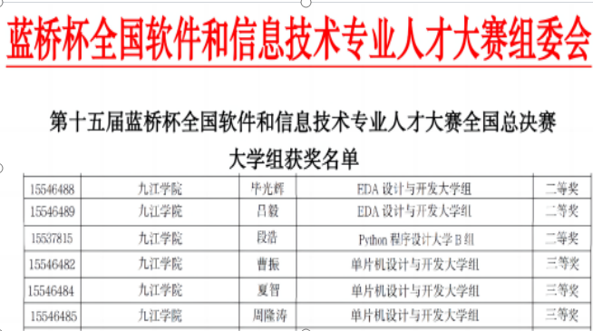 近日,第十五屆藍(lán)橋杯全國軟件和信息技術(shù)專業(yè)人才大賽落下帷幕,我校電子信息工程學(xué)院學(xué)子憑借出色的表現(xiàn),一舉斬獲多項(xiàng)榮譽(yù),其中全國二等獎(jiǎng)3項(xiàng),全國三等獎(jiǎng)3項(xiàng),全國優(yōu)秀獎(jiǎng)5項(xiàng)。