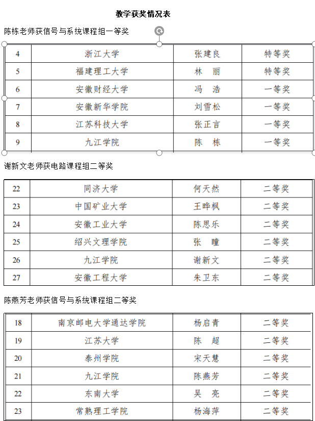 近日,第六屆全國高等學(xué)校青年教師電路、信號與系統(tǒng)、電磁場課程教學(xué)競賽(華東賽區(qū))初賽在中國石油大學(xué)(華東校區(qū))舉行。電子信息工程學(xué)院青年教師陳棟、謝新文和陳燕芳老師參加此次教學(xué)競賽,并獲一等獎一項,二等獎兩項。