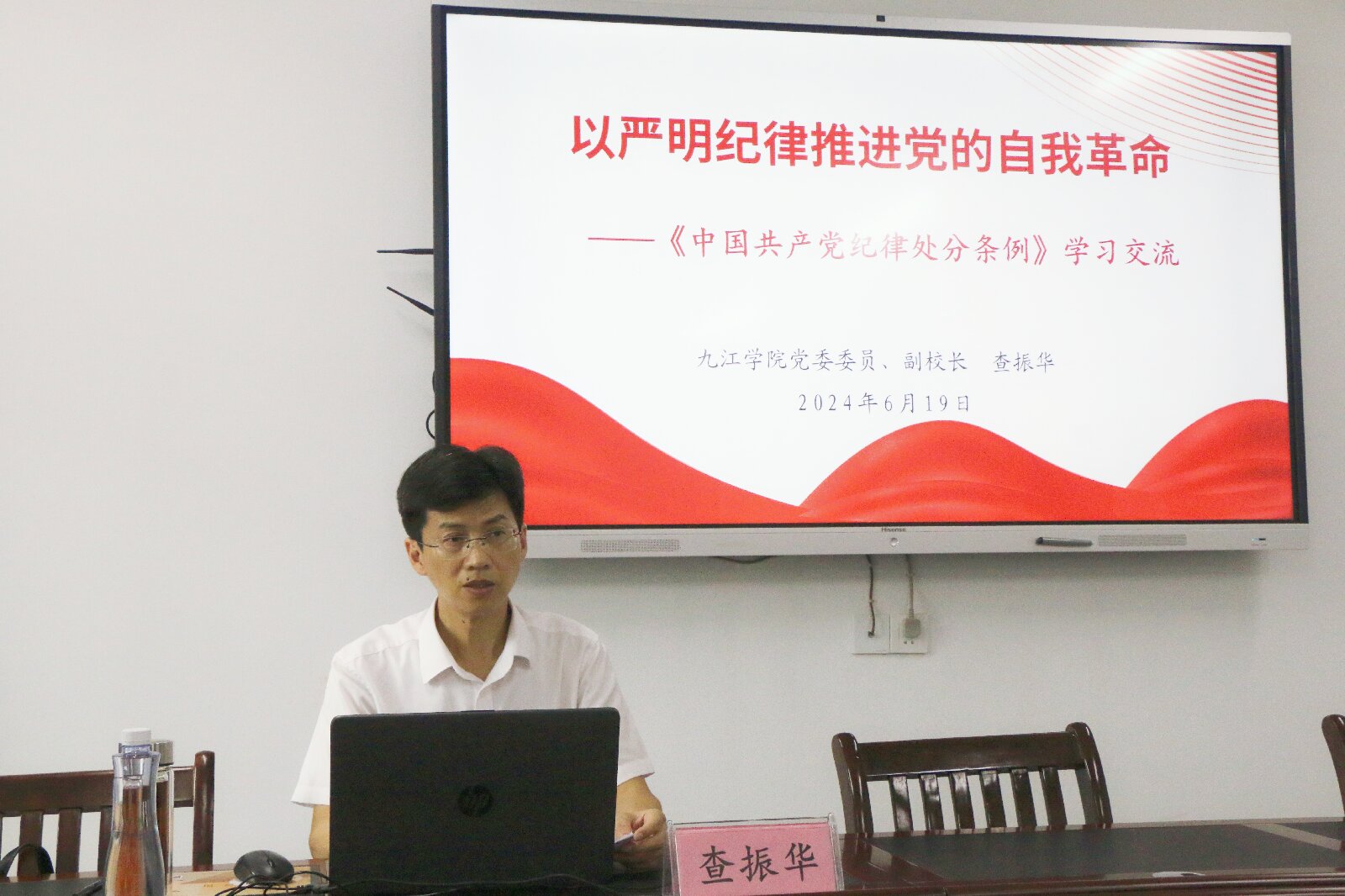 近日,校黨委委員、副校長查振華在繼續(xù)教育學院三樓會議室作以“以嚴明紀律推進黨的自我革命”為主題的黨紀學習教育專題輔導講座。招生就業(yè)處教工黨支部、繼續(xù)教育學院教工黨支部全體黨員參加學習。
