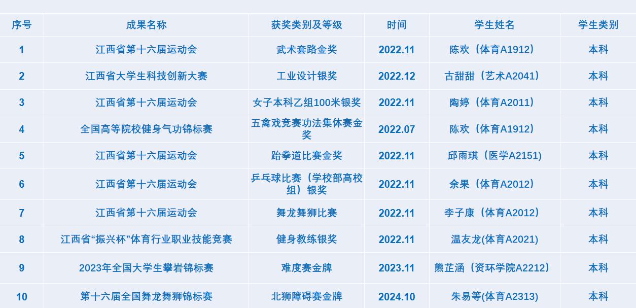 體育學(xué)院學(xué)生學(xué)科競賽獲獎統(tǒng)計表(部分)